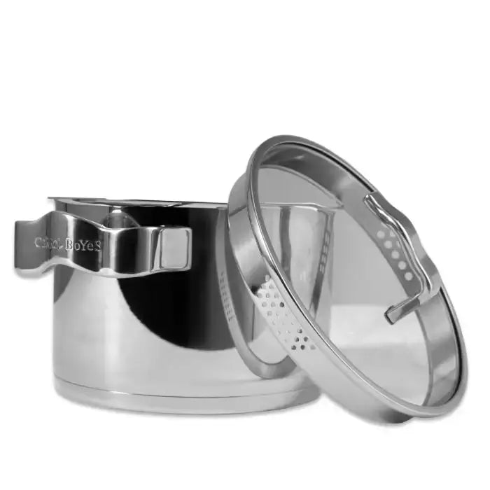 A premium 20cm Casserole Pot with Lid ideal for cooking delicious, fragrant casseroles, soups or stews. The Flow Cookware Range is created from mirror polished stainless-steel with a unique handle designed by Carrol.