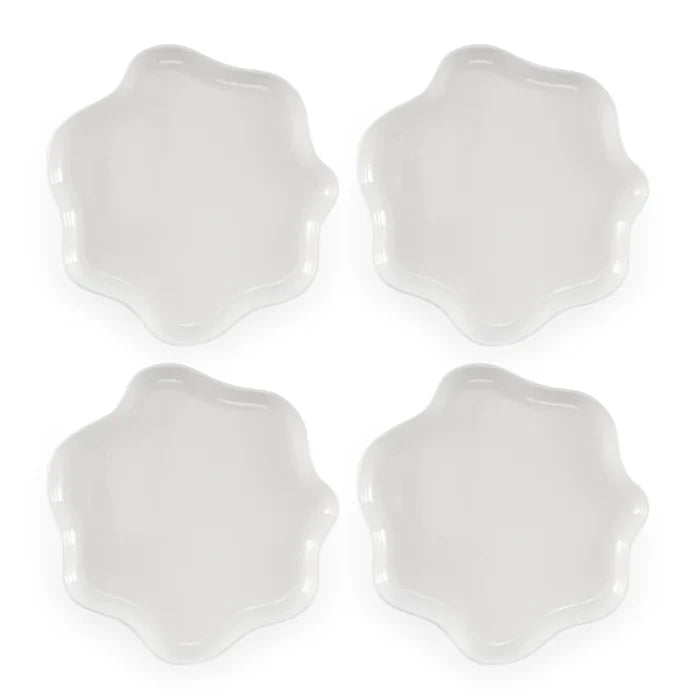 Embrace elegance with our Dinner Plate Set of 4 featuring a sculptural, wave-like design. Crafted from porcelain, these plates add fluid beauty to any modern meal. With versatile use for everyday dining, they make plating a breeze and add flair to your table setting.