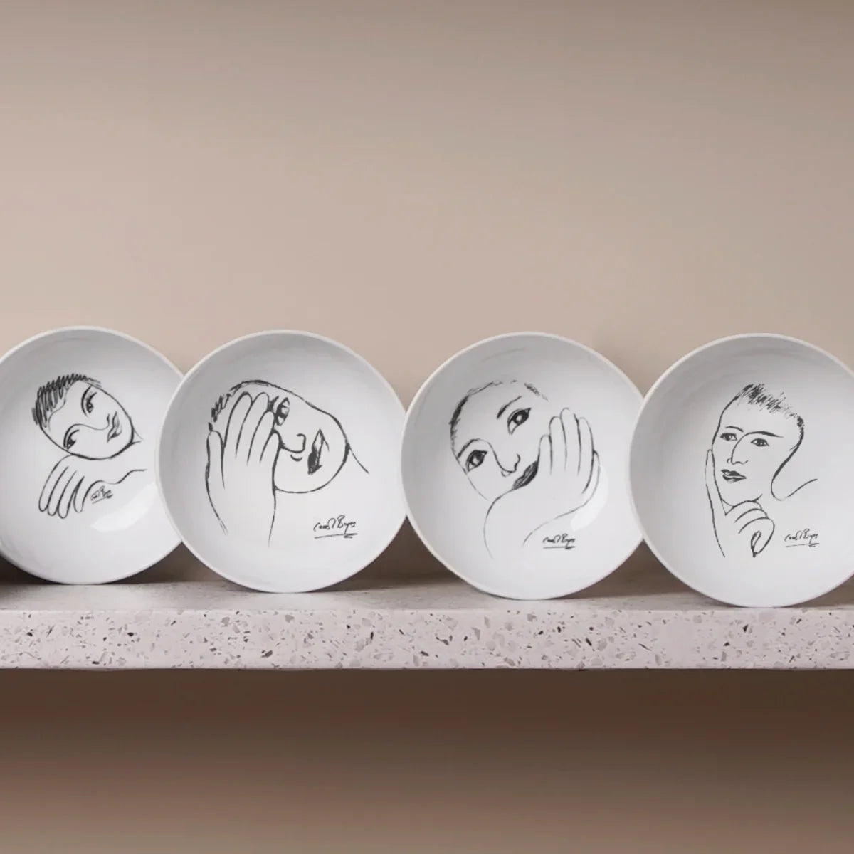 Introducing the Sketchbook Mixed Set - a heritage soup/cereal bowl set of 4. Each bowl features one of Carrol Boyes' signature hand-drawn figures, including Face Facts, Let's Face It, Distant Memory, and Just a Minute. Designed for everyday use, these bowls will add a touch of sophistication to your dining experience. Microwave and dishwasher safe for convenience.
